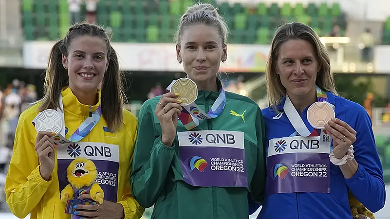 Ukrainian high jumper Yaroslava Mahuchikh delivered good news to her war-torn country with a silver-medal performance at World Athletics Championships 2022. The 20-year-old cleared 2.02 meters (6 feet, 7 1/2 inches) on Tuesday night to add the outdoor silver to the indoor world title she won in March, shortly after she escaped her hometown of Dnipro, which had come under attack by Russia. Australia's Eleanor Patterson took gold while Elena Vallortigara of Italy grabbed the third position.