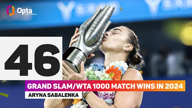 The 26-year-old has reeled off 46 match wins across grand slams and WTA 1000 events this year, which is one more than Swiatek (45).