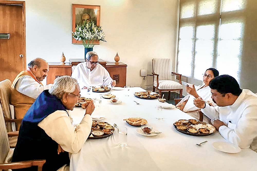 Power Lunch Naveen Patnaik, Amit Shah, Nitish Kumar, Dharmendra Pradhan and Mamata Banerjee in Bhubaneswar