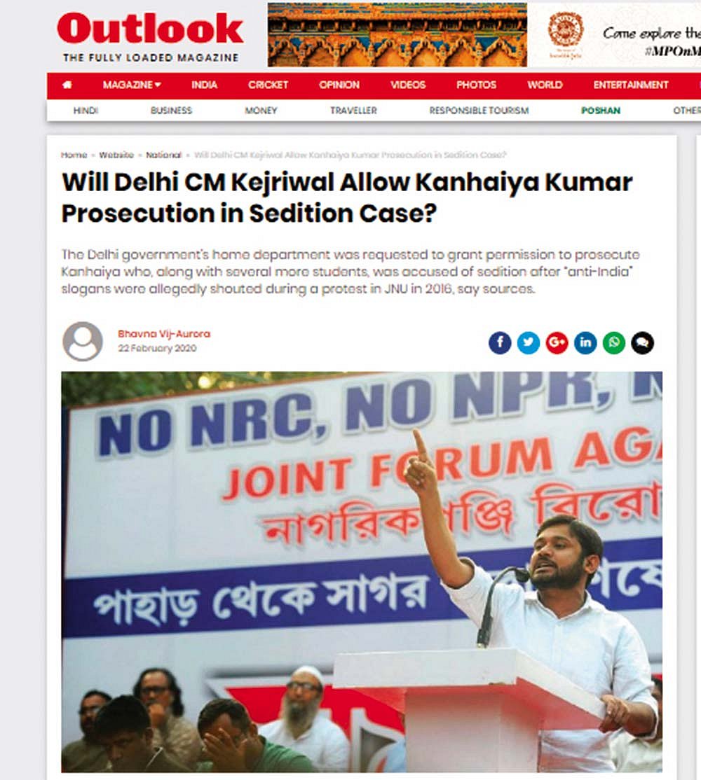 Outlook Got It First Delhi’s AAP government later granted sanction for prosecution in the JNU sedition case