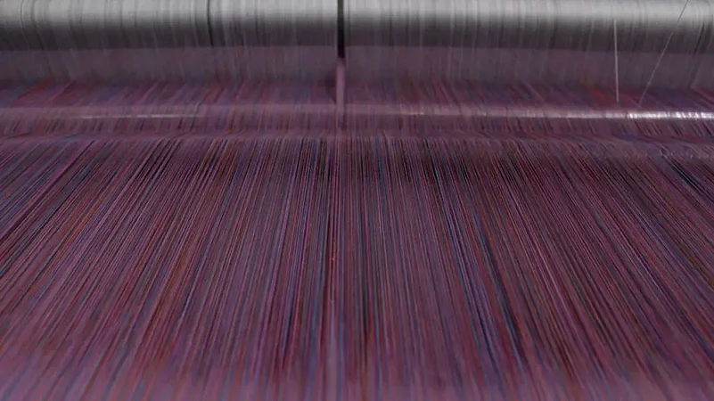 The design in a manual loom is upside down as compared to a machine power loom where the design is on top. And it is created using a binary technique, and then decoded directly on the cloth. There are also knots in the loom which help the weavers to bring out the design on the cloth. Each knot is twisted alternatively to blend two colours into the final product.