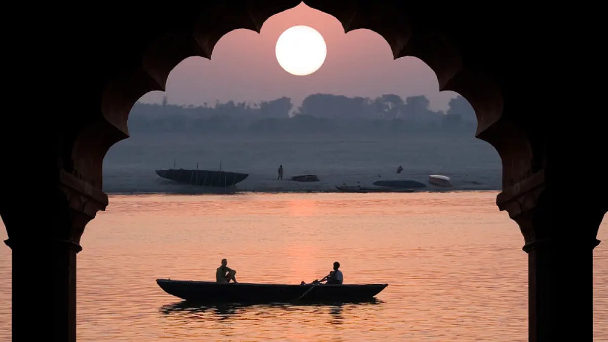 Early next morning I set off by boat to experience the unmatched ‘Subah-e-Banaras’. It was misty and the sun rose a sober saffron disc sending a trail of orange light across the milky waters of the river. One after the other, rose the steep stone steps of the ghats, ending in manmade cliffs of golden sandstone, buttressed with round, angled or scalloped towers above which were ashrams and palaces, their bracketed balconies supporting pillars of various designs. These contrasted with the towering shikharas, like clusters of miniature mountains, with their golden pinnacles. On the ghats themselves were the living heritage of the city — the bathers and worshippers.