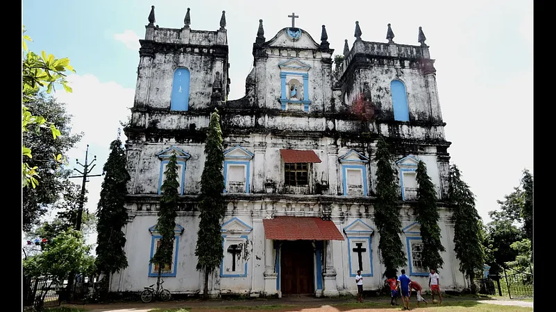 If I have to summarise it in a few words, I would say closed gates, old churches, vast empty lush green spaces, old structures in shambles, Portuguese architecture and clean, empty narrow roads. But as I get into the details, what lies in front is a visual delight. Life seems to stand still in this little peaceful hamlet.