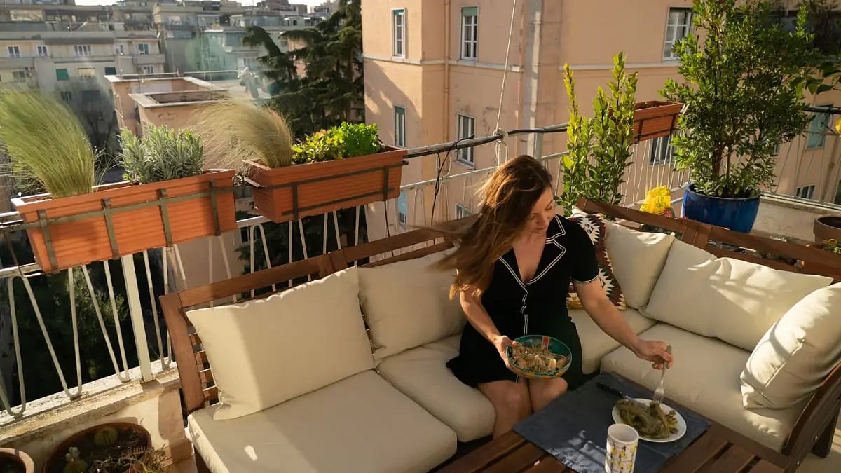 "The show was filmed in my apartment in the spring of 2021. It’s all about cooking and hosting guests. I’ll make pizza dough in my kitchen and bake it in the oven on my terrace for friends, or I’ll mix some drinks in my living room and serve them with snacks to a friend. We really wanted to capture the simplicity of Roman food and the joy of entertaining. We focus a lot on ingredients and my approach to shopping and supporting small artisanal food businesses."