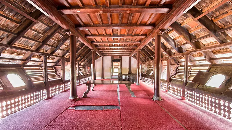 Located in a quaint little village in Alappuzha, this palace was built around the 18th century by the Travancore king, Raja Marthanda Varma after his victory over Odanad. Complete with gabled roofs, narrow corridors, dormer windows and Mangalore tiles, it is one of the finest examples of Pathinarukettu or Kerala-style architecture. The palace complex, which now functions as an archaeological museum, is a treasure trove of ancient paintings and inscriptions, coins, megalithic remains, artefacts made of wood, brass and stone sculptures. Some of the best displays in the complex are the Kayamkulam Val (sword), a statue of Buddha from the 10th century, ceremonial utensils and the gorgeous mural of Gajendra Moksham, that depicts an elephant saluting Lord Vishnu as the other Gods, Goddesses and sages look on in reverence. Sized at 49 sq m, it is the largest single mural ever found in Kerala.