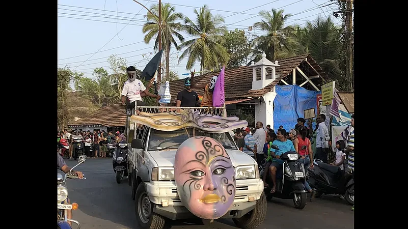 Loud music, colourful costumes and decorated streets – the atmosphere was electrifying. As and when the floats kept coming, making their way to the beach, the locals kept throwing water balloons and cheering them. PUBG characters and many other fictional characters dotted the streets - not to forget the iconic V for Vendetta mask. There were jeeps with people dressed crazily going around the streets.