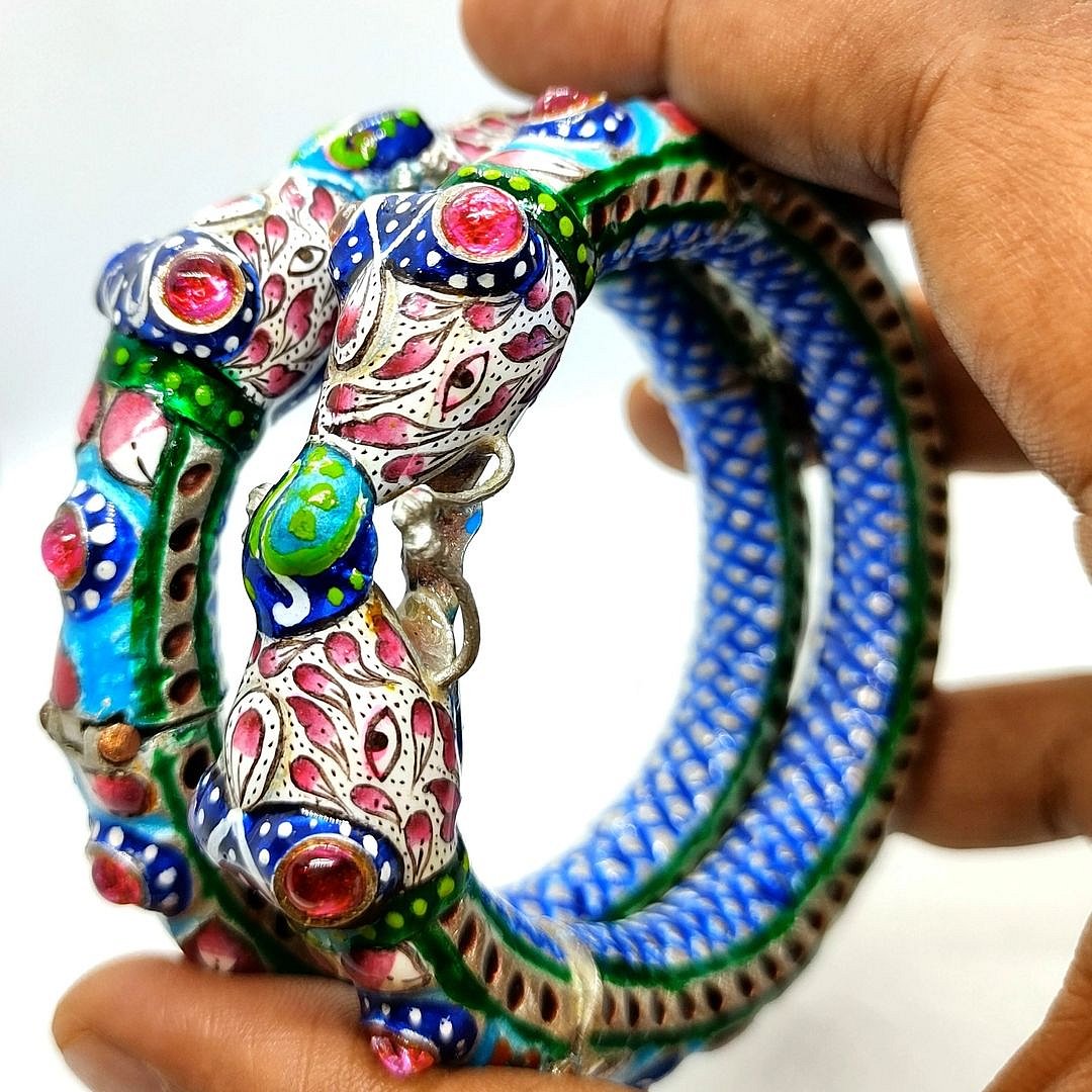 The rare and delicate art of gulabi meenakari thrives in the bylanes of Gai Ghat in Varanasi. The art form came to India in the 17th century with the Persian enamellists, who travelled to India under the Mughal rule. Now bestowed with the Geographical Indicator tag, the art of gulabi meenakari of Varanasi, once foreign but long ago accepted and owned by the artisans of Varanasi, has acquired an added sheen of protection and preservation.