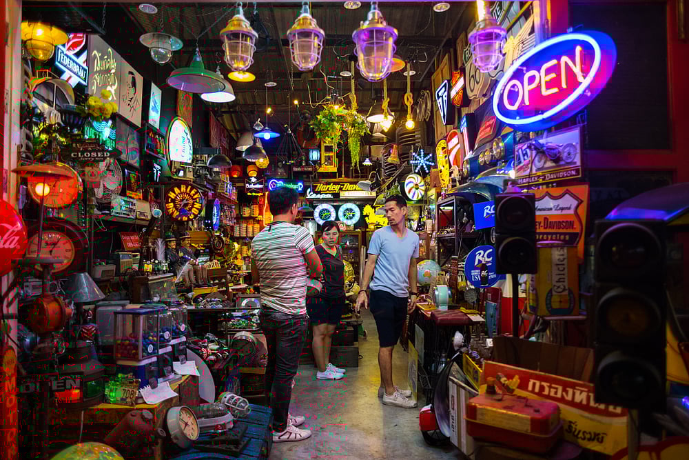 Thailand is known for fascinating night markets that offer not just a shopping experience but also an unforgettable adventure. As the sun sets over the bustling city of Bangkok, the night markets come alive with a vibrant energy that's hard to resist. Amidst the bright lights and lively chatter, you'll find a treasure trove of gems from a wide variety of stalls offering vintage memorabilia and collectibles, excellent local ceramics, handicrafts, clothes, and more. As you wander through the maze of stalls, your senses will be tantalised by the delicious smells of sizzling street food, ranging from spicy curries to crispy fried snacks. And what better way to wash it all down than with a cold local beer or a refreshing cocktail? With so much to see, taste, and experience, Bangkok's night markets are an adventure not to be missed. Most of them start at around 6-7pm and go on till midnight. Here's a guide to some of the most interesting night markets in and around Bangkok that you wouldn't want to miss.