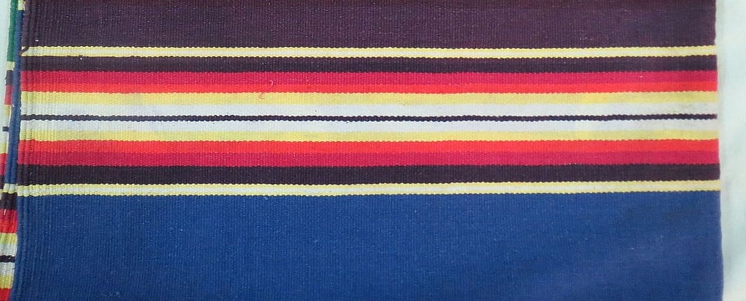 The standard colours and stripes of the Bhavani Jamakkalam carpet Photo: Booradleyp1/Wikimedia Commons