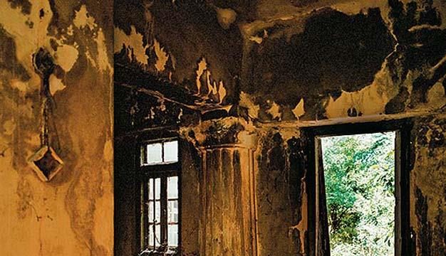 On the final day of my last visit I decided to walk up this hill. I took the path east from the station, past the pink spoil-heaps of locomotive cinders, and then followed it south up a sloping field of red earth until I reached an unkempt orchard of lime, guava and mango trees. This was Mrs Texeira’s land and in the middle of it stood the ruin of her bungalow, Woodlands. There was only a little glass in the windows and the holes in the asbestos roof had been stuffed with rags. Kitty’s mother, Marjory, took me into the parlour, where goats were nuzzling some old wicker chairs and the floor was strewn with leaves. A Winchester shotgun lay upright in one corner.