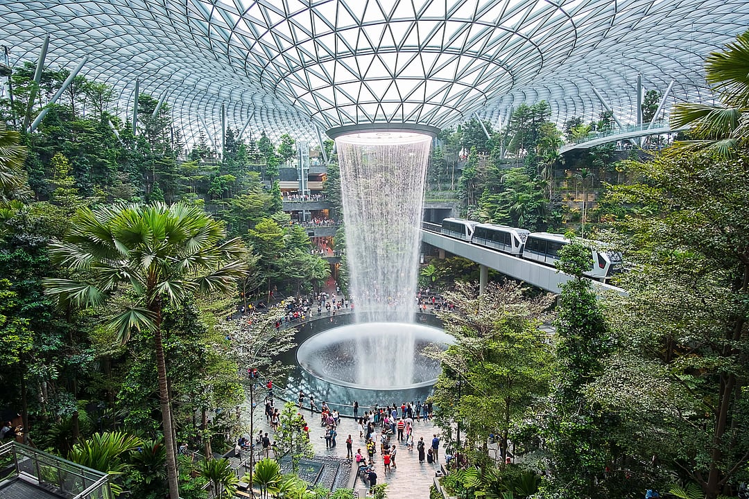 The Jewel Rain Vortex at Singapore's Changi Airport is the world's tallest indoor waterfall Photo: JoPanuwatD/Shutterstock
