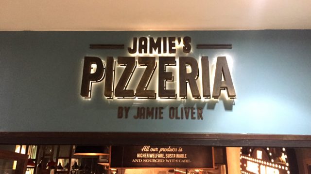 The 60-seater Jamie’s Pizzeria is spacious enough. You can either opt to sit by the open kitchen or move to the far end where you can catch an excellent view of the busy National Highway 8. And do not forget to browse through the products on sale—cookbooks written by Jamie Oliver, porcelain oven-proof dishes, and Jamie Oliver monogrammeed napkins .