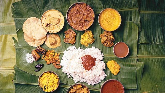 Come Onam, it is wise to be prepared with the 10 stomachs of Ravana himself if your travel plans point south to Kerala. That way you can have a fresh tummy for every two-three dishes at least. Because the single-course sadya ladled out on the banana leaf like a game of culinary Chinese chequers can easily cover two dozen items—and if it is a particularly lavish wedding, each of your stomachs might have to stretch to five or six items each. Holding down the centre of the leaf, by sheer weight, is rice—red rice. To be eaten with curries as diverse as a thick parippu (lentil dal) with ghee, sambhar, spiced yogurt pulissery perhaps flavoured with mango or pineapple, the spicy-sour thin rasam, starchy kaalan, pumpkin-sliver olan, and tempered buttermilk. ‘Dry’ sides will feature theeyal with ground roasted coconut and thoran with fresh grated coconut, the iconic coconut-milky aviyal mix and the lentil-thickened kootu, hot dry erissery and raita-ish pachadis. There will be crunch from fried unniappams, lentil vadas, sweet flour crisps and the redoubtable banana chips. There will be mouthwatering slurpiness from pickles and preserves, top left, of tamarind, green mango, amla, lemon and vegetables like cauliflower. There will be soothing sweetness in payasams and pradhamans, pancake and puddings with lentils, fruits, milk or coconut milk and often tender coconut water and flesh. And there will definitely be the punctuation marks of appalam and banana, at bottom right. Shame on your stomach(s) if you still have room to follow up banana leaf with betel.