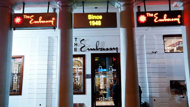 These days, the restaurant has turned into something of a culinary landmark that evokes memories of a bygone era. The colonial influence reflects in the wooden interiors and high ceilings; and in the menu. The Embassy, in its early days, was heavily patronised by western guests, and the menu reflects a time when the restaurant’s Indian cuisine was specially modified to appeal to the European palate.
