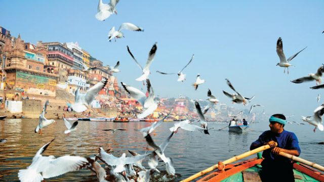 An excellent combo of location, food and price is the Pizzeria Vatika Café at Assi Ghat. Their crisp pizzas come with toppings like olives, pineapples, spinach and mushroom. One can sit here all day long and watch the Ganga, her boatmen, her recent acquisition of migratory seagulls. There’s always a breeze, always a bowl of leaves with marigolds, perhaps a boat with children selling toys. And we gently digest Banaras among what Mark Twain, who came here in 1826, called “the supreme showplace of Banaras… a splendid jumble of massive and picturesque masonry… movement, motion, human life everywhere…”