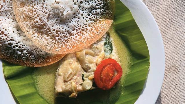 Aniamma Philip, our co-host, presides over a lesson in Nasrani cuisine every day, assisted by her daughter-in-law Anu. Guests are encouraged to participate on most days, but on this occasion we have a full house and so the spectators restrict themselves to crushing leaves and spices between their fingers and inhaling deeply. We are taught how to make a fish molee and we follow the ritual of smashing ginger, garlic, onion and green chillies around till they take on a mild glaze with tense attention and many questions. After her grand-daughter contributes three stalks of curry leaves with much clapping of hands, Aniamma makes sure we have registered exactly how much turmeric must go in, followed by the fish, and the necessary spices. She anticipates our questions with a brisk kindness and an admirable economy with words (“any fish can be used” and “now add thin coconut milk — more water, less cream”) and allows the molee to simmer for a while, before topping it with sliced tomatoes. She rolls the contents around gently and gives the phrase ‘shaken, not stirred’ a new life before tossing in vinegar made from toddy. The crucial moment is now upon us — she spoons a little into her hands and tosses it on to her tongue with an explosive ‘twick’. That sound is the signal that today’s effort passes muster. The flame is turned off and the thick coconut milk, which has been skulking in the background, now comes into its own. It can be added only after the molee has been taken off the stove — to do otherwise would result in embarrassing results. We consume the molee 15 minutes later — and the sense that something occult has passed into the realm of the do-able keeps the conversation going for a long time.