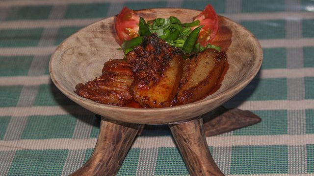 Probably owing to their lifestyle, fermenting the food has been a typical practice among the tribes. Axoni or fermented soybean as well as dried and fermented fish are used as ingredients. Some tribe specials that you must try are the anishi—prepared from edible Colocasia leaf, it is a specialty from the Ao kitchen; mashed fish, stuffed and cooked inside a bamboo by the Lotha tribe; and the Konyak tribe’s star dish—yam cooked with smoked pork or beef. Those keen to further explore Nagaland’s varied cuisine can try pork cooked with snails and bamboo shoot. And then there is pork with axoni. A traditional Naga meal is incomplete without the chutney—made of raja mircha and fermented fish, and a side dish of boiled vegetables—cabbage, mustard leaves (lai patta), beans (French, pole, Lima etc.) and squashes.