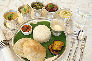 Masala Art, the Indian restaurant at the Taj Palace, New Delhi, has introduced four different thalis based on temple cuisine from four corners of India. The eastern bhog thali has mainly Bengali fare; the western thali is based on Gujarati cuisine; the northern thali is predominantly langar food; and the southern thali has elements from all the southern states. The ideal way for a family to taste these is to order one of each and share.