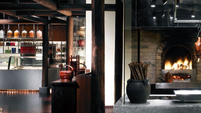 Located next to the pool area, the restaurant has an open kitchen at the entrance, five private dining rooms, a wine wall, a tea bar and the dining area – all depicting traditional elements of a Chinese house.