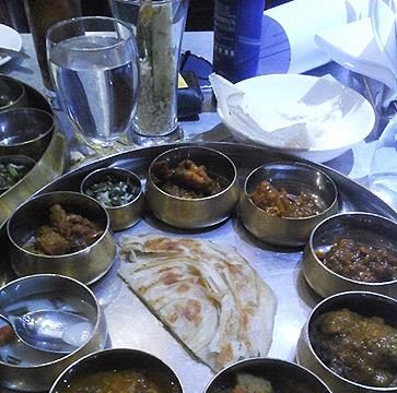 I didn’t want to waste my appetite on a whitish Malabar stew — but I changed my mind, and a very good decision it was, too. The thick stew, of chunky vegetables in coconut milk, was very lightly spiced (but not at all bland) and with a subtle hint of ginger. Perfect! Fresh appams being made at the live kitchen, the aroma of fresh ground spices in the vegetable thorun (a mixed veg dish), the chicken, mutton and fish varieties – everything compelled me to tuck in rather greedily. I was witnessing regional boundaries melt on my thali as both the Malabar parotta and appams got along famously with the Andhra chicken and Kerala mutton. The only thing missing was a crab item.