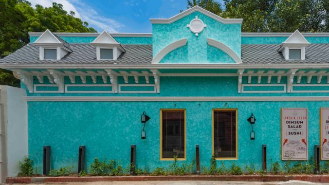 The outside walls, a gorgeous shade of blue, immediately lifted my mood as I was walking into Café Tesu. Recently opened in Essex Farms (Aurobindo Marg), this café has got its colours spot on. The ample lighting on the pristine white walls, and huge windows offers a sense of spaciousness. Add to that the wooden seating arrangements, the bright flamingo on the wall, and you have a funky yet soothing place to chill.
