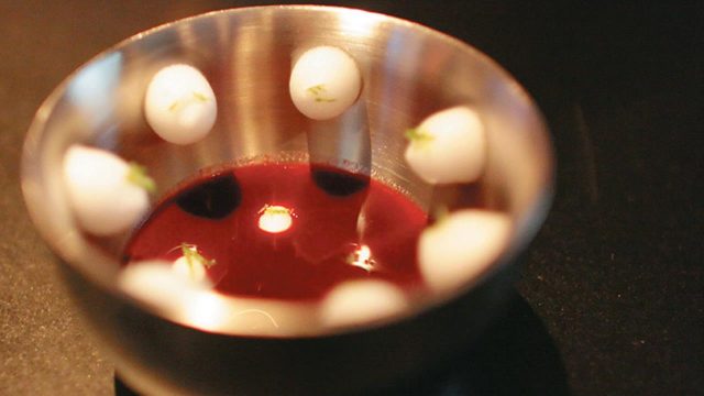 From New York, we headed for Champaign, from where I was driving to Chicago the next morning with the rest of the brood, for a visit to the Aviary, in Chicago’s seedy meat-packing district. Founded by Chef Grant Achatz, the Aviary showcases molecular mixology techniques. That term derives from molecular gastronomy, which is the application of simple scientific methods along with food-grade chemicals to create interesting food recipes. Molecular mixology does the same with drink recipes. Fancy your Mojito served up as gelatinised balls of mint water and lime juice, suspended in carbonated white rum? That’s a molecular mojito.