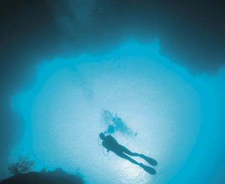 Upon doing so, my immediate observation was that there was nothing beneath me! Recreational divers in clear tropical waters are accustomed to checking the reef from the surface to ensure a suitable entry point for the dive. All I saw as I gazed down through the clear water was an unnerving infinity of blue. With my face in the water I turned towards Barren, just as one of my companions whispered, “Look at the wall!” And there it was. The black sides of the pinnacle fell into nothingness through waters that changed from light blue at the surface to an inky indigo that swallowed all detail of the island’s sheer sides.