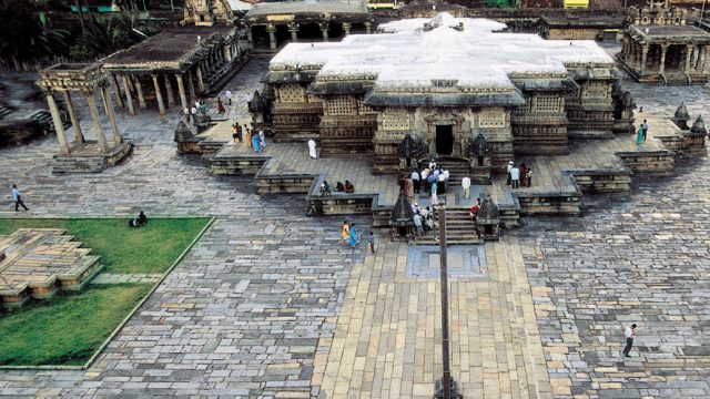 Belur-Halebid go together like twin cities. Separated only by a short drive, both were home to the Hoysala dynasty for three centuries (mid-11th to mid-14th century). Coming upon one after visiting the other is like recognising a family resemblance. Both look similar being star-shaped. They were founded by a Jain, Nripa Kama, whose kingdom was sandwiched between the Cholas of Thanjavur in the south, and the Chalukyas of Badami in the north. Nripa Kama’s son and successor was Vinayaditya. He is remembered by later generations that often, incorrectly, consider him to be the founder of the dynasty. But Halebid and Belur tend to defy history. It is rare to find a place that appears so untouched by time.