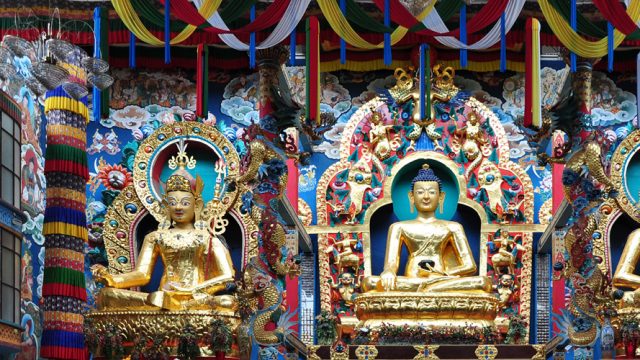 There is a lot in store for those who want to satiate their hunger for spirituality with monasteries like the Sera Jey and the Sera Mey both located in close proximity of one another, owing to the Gelukpa school of Tibetan Buddhism. Suggesting the constancy of worship and service, one can find many such monasteries placed in almost every camp in Bylakuppe, welcoming multitudes of tourists and inhabitants alike. They say that nothing can compete with the power that women hold within them and this translates into the strong faith that people have in the Ani Gomba (Tibetan Nunnery) called The Ngagyur Tsogyal Shedrub Ling Nunnery. At a stone’s throw away stands the most visited and glorious Namdroling Monastery, popularly called The Golden Temple. An architectural wonder in itself with its long lineage of Nyinmapa Tibetan Buddhism, this monastery sees visitors throughout the year witnessing the glorious sight of glistening gold, housing golden statues of the Buddha Shakyamuni, the Buddha Amitayus and the Padmasambhava. Amidst the resonating sounds of gongs, chanting monks and chirping birds the Namdroling Monastery stands apart and establishes its presence by towering over the silver oak plantations of Bylakuppe.