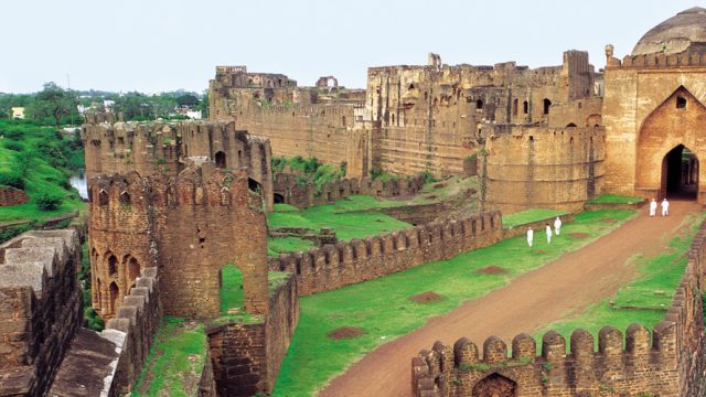 Most of Bidar’s monuments date back to the Bahmani dynasty. Ahmad Shah I strengthened the citadel at Bidar on the foundations of an ancient fort whose origins are lost in time. The fort stands on a high bluff with a steep drop. The walls snake around fora distance of 10 km, with strategically placed bastions and towers, perfect for a commanding view. Look through the graceful, albeit ruined, arches of the Diwan-i-Am and the Diwan-i-Khas, or from the top of the Solah Khamba Mosque.