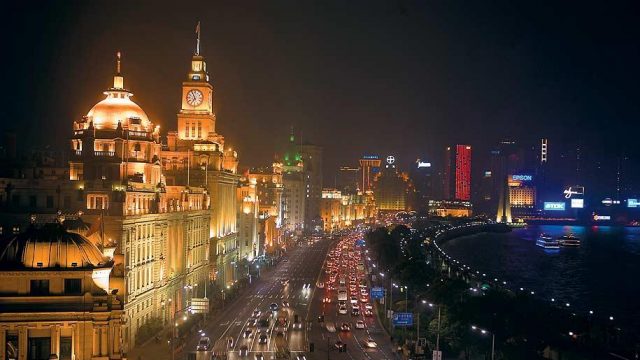The Bund is China’s Wall Street, complete with its own big bull. Building heights on the waterfront are capped by decree, with the Peace, Shanghai’s first high-rise, still the tallest — though dwarfed by the shiny new skyscrapers across the river. Other Shanghai Deco buildings that incorporate a chinoiserie aesthetic along with the typical Egyptian and geometric abstractions also line up on the western bank, the old Puxi area.