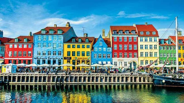 The canal at Nyhavn, or New Harbour, is lined with bright gabled houses now containing cafés and restaurants. From here, tourists take sightseeing trips on ferries along the canal and nearby harbour. On Købmagergade is the Round Tower, a 36- metre-high structure built as an observatory in 1642, and whose platform gives the panoramic views of the city only rivalled, locals say, by the view from the tower at Copenhagen zoo.