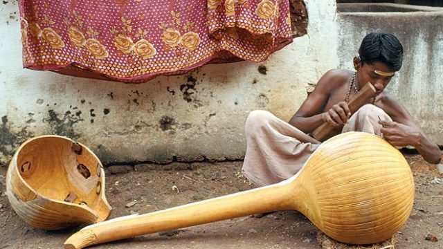 The evening finds us gathered once more by the banks of the Cauvery in Thiruvaiyaru. The setting sun reflects kindly on its greatly depleted flow. Hundreds of students from schools and colleges, the local bureaucracy and temple administrators, have been roped in to clean up the riverside near the Kalyan Mahal Ghat; there are plans to make this an ongoing process. The Kalyan Mahal, Ranvir hopes, will eventually be home to a museum for the musical instruments of south India. The night air crackles with anticipation. As we watch the reflection of the floodlights bounce off the Cauvery’s waters, 45 Manganiyar musicians tune up their instruments, on the opposite bank from where we are seated, to transport us from the Cauvery’s sands to the desert sands of Rajasthan. Our last evening is spent at one of the many mandapams of the Panchanadeeswarar temple, where Guru Kadri Gopalnath treats his rapt audience to Carnatic music on a sax!