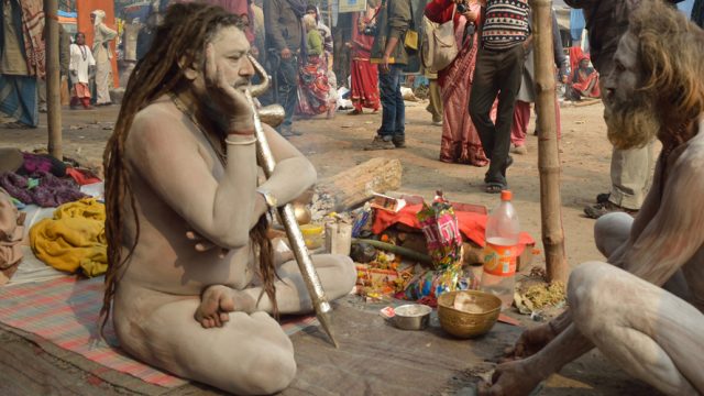 The path from the temple goes straight to the beach where people congregate for the dip. Tented colonies are set up in the vicinity of the beach during the fair. While pilgrims begin arriving on the eve of Makar Sankranti, the state administration begins preparations weeks ahead. Security and medical arrangements take priority as well as checking for fire hazards. Usually, this is one of the coldest phases along the southern tip of West Bengal, the temperature taking a nosedive with the occasional rain and the chilly breeze. Snatches of robust community singing could be heard from the various ‘akhara’ and the temples. It also helped to keep yourself warm. In some places, people listened to religious discourses. It was also not uncommon to find groups of men surrounding a ‘naga’ sanyasi or two with the hope of being allowed a smoke from their hookah. Technology too has found its following among the holy brigade. Hence do not be surprised to find bike-borne sadhus, sadhus sporting sunglasses or one busy speaking into a high-end cell-phone.