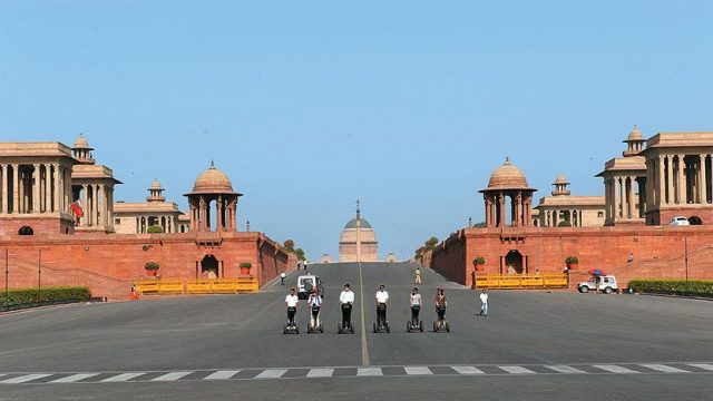 Which is how I ended up one glorious summer morning gliding on two wheels up Raisina Hill as the sun rose over India Gate. Riding a Segway PT takes a little getting used to—lean forward to make it move forward, backwards for slowdown or reverse and stand straight to make it stop. Unlike a bicycle or scooter where you twist the handlebars to turn left or right, on a Segway, you tilt the entire stem. And also unlike a bicycle or scooter, the wheels are not connected, so you can make full 360° turns.