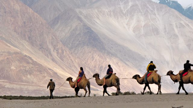 The capital of Ladakhi kings from the mid-16th century, Leh was also the trade hub of this region. Traders travelled here from Tibet, Baltistan and Kashmir, and trade between Punjab and China was also conducted via Leh. Silk, wool, salt, tea and opium were the staples being carried, among many others. When you travel from Leh to Nubra Valley today, you are following the age-old busy Nubra trading route that went on to the central Asian cities of Yarkand and Khotan.