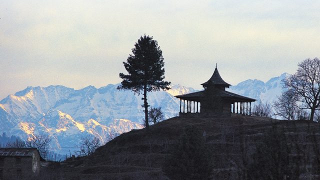 This is the highest peak in the vicinity at 11,155 ft and is home to the local mother-goddess Hattu Devi. There is a distinct shaded path with little undergrowth going up through the pine forest, which affords a steady climb. It is rare to find a place of such intense solitude with so little effort. The top is just above the tree line, here marked by black oak trees, and offers views on three sides. The land falls away dramatically, carrying forests, villages and towns on its slopes with equal aplomb. The twin temples of Hattu Devi, with idols of black stone within, stand side by side as if in a before-and-after advertisement — one shrine has been recently refurbished in white tiles.