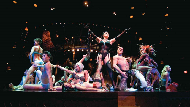 Typical is the Folies Bergere show I saw at the Tropicana. One of Vegas’s longest-running shows, the current production is a lavishly produced paean to women, which in Vegas parlance means a shorthand account of the way women have dressed through the ages — from the can-can dancers in Belle Epoque music halls, to flappers in 1920s speakeasies, to 1930s Hollywood glamour, the 70s peace and love crowd. The show only loses its way when it addresses contemporary times. Folies Bergere is the classic Vegas confection, an overproduced spectacular that makes up in enthusiasm and desire to please what it lacks in depth and imagination. Vegas shows are lavish and aspire to fantasy but, at least the two I saw, never quite achieve it. Fantasy requires originality but Vegas is about reduction, taking the great or the extraordinary or the beautiful and cutting it down to size.