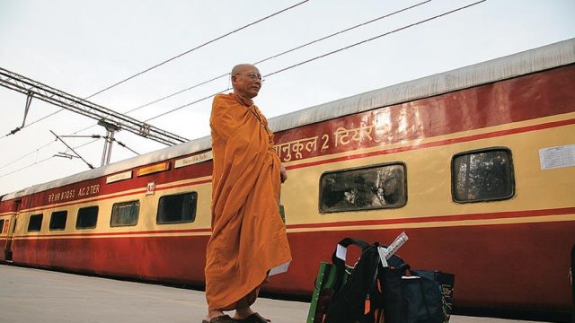Tour facts: The Maha Parinirvan Special Train was launched by the Indian Railways to commemorate the 2,550th year of Budhha’s Mahaparinirvan. The train covers the major Buddhist pilgrimage centres in India, and Lumbini in Nepal. The train is similar to a Rajdhani in terms of comfort and services offered. While the Railways offers 8D7N tours, it is possible to book tours of a shorter duration, with a minimum stay of three days. In the regular tour, tourists spend five nights on the train and two nights in hotels.
