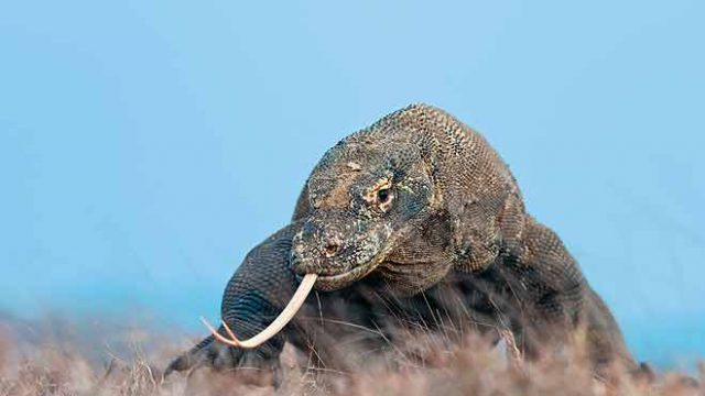 Considered to be the most intelligent reptiles on the planet, they are carnivorous and cannibalistic — komodo babies spend their early years on top of trees to avoid being eaten by adults. They have snaking, forked tongues that they use to smell prey, and their mouths are full of lethal bacteria that reside in the crevices of their knife-sharp, inch-long teeth. Komodos can eat 80 per cent of their body weight at one sitting. And while their regular diet consists of pigs, deer, snakes and water buffalo, they occasionally snack on tourists as well.