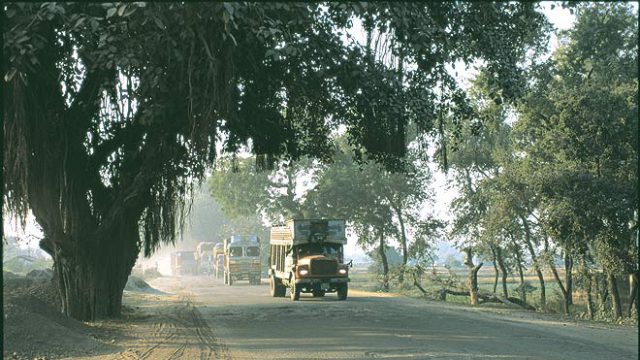 We’d opted to travel west, rather than in the traditional eastern direction of traders and marauders, to keep the sun out of our eyes. It shone benignly on a properly Olde Worlde sign reading ‘Straight Way To Delhi’. We were on the shady dual carriageway of NH2, known here as the Durgapur Expressway. Suddenly it became a bare, bumper-to-bumper stretch at a yellow board that said “Prime Minister Atal Behari Vajpayee’s Dream Project of Golden Quadrilateral. 4-laning of Palsit-Dankuni Section”. The PM was pointing dreamily into the distance. The 4-laning process, itself highly un-dreamy, is due for completion on this section late this year or early the next. The PM would accompany us all the way.