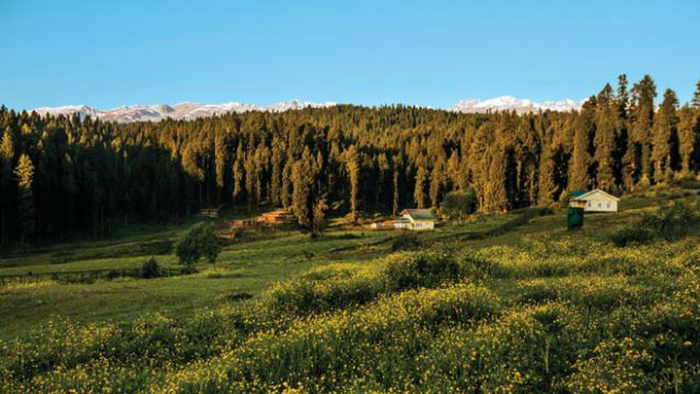 A 45-km drive from Srinagar, passing apple and walnut orchards along the way, takes us to Yusmarg or Yousmarg in the Badgam district of western Kashmir. Yusmarg, which means ‘Jesus meadow’, has lush green meadows fringed with thick wooded alpine forests in every possible hue of green—mint, apple, lime, emerald, and more. Snow-capped peaks encircle and jealously guard this divine and little known slice of paradise. Still rather raw and intact, the grassy knolls teem with horses, sheep and conifers. The centre of Yusmarg is the JKTDC guest house huts, scattered cottages across acres of rolling meadows, with a lake in the distance. The views are stunning, much like an alpine valley in Europe. A four-kilometre horse ride deep into the woods takes you through some incredible landscapes, while a babbling stream snakes its way through the pine trees. In the distance, the Nilnag lake, cradled in the hills, shimmers.