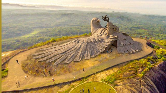 The center has been built in a public-private partnership under the Build-Operate-Transfer (BoT) model. The bird sculpture replicates the mythical bird- Jatayu, which was developed by filmmaker and sculptor Rajiv Anchal. As per mythology, Jatayu died at this spot while fighting with Raavana to save Goddess Sita. The sculpture is 200 ft. long, 150 ft. wide and 70 ft. tall, making it the world’s largest bird sculpture with an entry into the Guinness Book of World Records.
