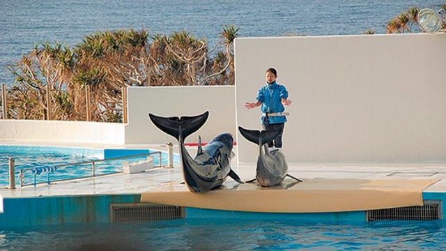 It’s early evening by the time we reach the coastal Ocean Expo Park, stomachs still full to bursting. We’re here to visit the Churaumi Aquarium, which has a dolphin show, resident whale sharks (that grow up to forty feet) and the world’s first manta ray pups born successfully in captivity.