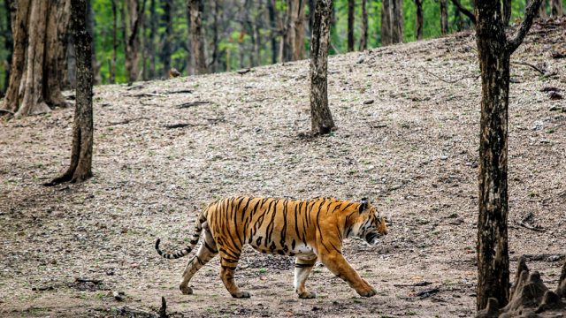 ‘A great plain dotted with rocks and cut up by ravines’, is how Kipling had described Pench. The jungle looked parched as our rattling jeep hurtled past, and the vegetation was completely missing in most places. It had been raining on and off for the past few days, but the withered teak trees were craving for more than just the occasional spell of rain. The first safari started off with a bang; a couple of minutes into our drive, a spectacled cobra flaunted its semi-flattened hood before slithering away into the undergrowth. Snake-sightings on a safari are exceptionally rare and cobra sightings even more so, but the telephoto lens-wielding tourists behind me were clearly unimpressed. I knew it was only a matter of time before the “tiger dikhao” refrain would be vehemently hurled at the guide. The jungle might have been reeling under the heat but for tiger-obsessed, shutter-happy tourists, these were optimal conditions for big cat spotting.