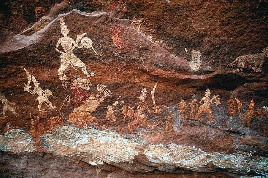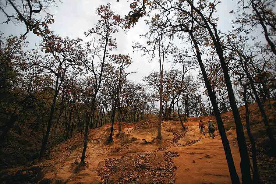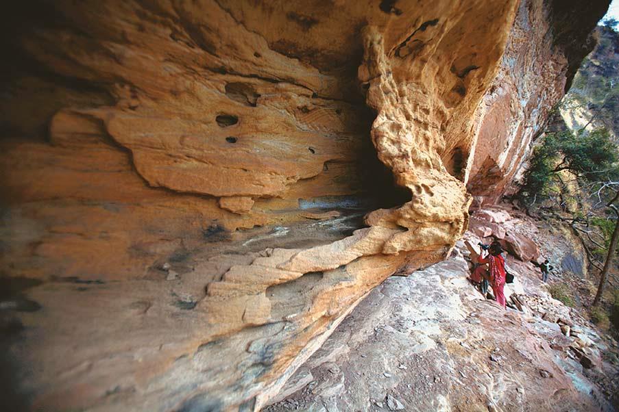 I am outside Pachmarhi, in the shadow of Dhupgarh, the highest peak in the Satpura range. Pachmarhi first entered my system through a sari: raw silk, the colour of sand. On it, rendered with simple quilt stitches in maroon thread, was a giant dance circle with at least a hundred dancers. Geometric figures with linked arms swirled in a tight spiral to the centre, where a figure with wild hair beat on a drum. I wore this sari for years until one day a friend said, ah, cave art at Pachmarhi. Whether or not the diagnosis was good, Pachmarhi had made its entry. And now, I am on a three-day trip through the Satpuras in search of the dance circle.