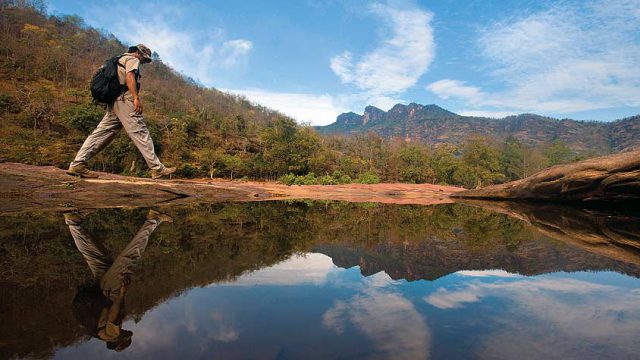 Between November and March, you could take the four-day walking safari (Rs 35,000 per person per night inclusive of road connections, meals, full camping, naturalist fees, park fees and guide charges; +91 9810024711, pugdundeesafaris.com) along the scenic Forsyth’s Trail, which includes three nights of camping inside the park.