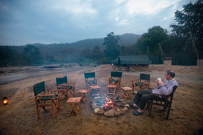 The safari starts at Pachmarhi and retraces the trail taken by Captain J. Forsyth of the Bengal Lancers 150 years ago. There is no electricity at the campsites of Daheliya and Manakachar, and accommodation is in tents furnished with twin cots, blankets and pillows. The camp staff provides wonderful service, while the cooks turn out delicious meals. A team of experienced naturalists accompanies all safaris. Minimum of two people required.