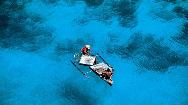 One little shack slapped together with foraged pieces of mismatched timber announced a salon, where hip Bajau could get hair extensions and colour their hair. We stepped over a low fence that demarcated the limits of the shanty. Beyond the fence, a long lineup of resorts fringed the clean beach. White bodies lay inert on deck chairs, with glasses of drinks and bottles of lotion within reach. At the far end of the beach, a group of Malaysian police, in their telltale blue uniforms, sat chatting in the shade of a tree.