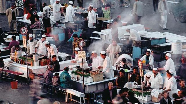 Jemaa El Fna is ringed by cafés and big gloomy restaurants that feel incredibly like Koshy’s in Bangalore. Waiters will let you sit around for hours (in the Café de France they will also take hours to serve you) and these are great places to people-watch. The food stalls set up in the square every evening offer a unique eating experience, great value for money and didn’t upset these travellers’ stomachs. If you are getting sick of Moroccan food, head to Guéliz, where you can eat everything from fast food (there is a big McDonald’s at Place du 16 Novembre) to Continental haute cuisine — there’s even an Indian restaurant called Salaam Bombay (1 avenue Mohammed VI) run by people from Chennai.